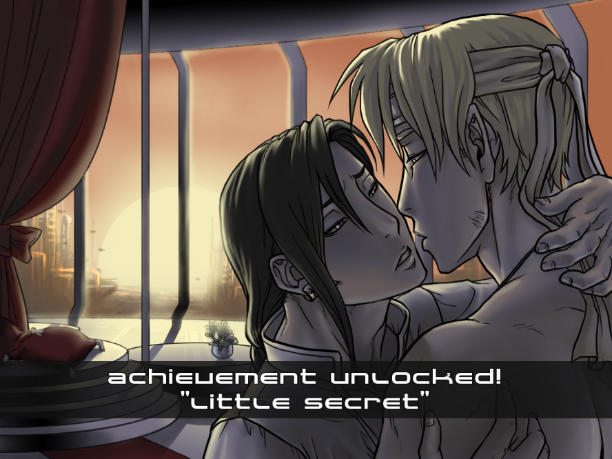 Not only that, but while backgrounds and character sprites are drawn beautifully, CGs are a completely different existence. Characters sometimes look totally different between their sprites and their CG presentations and I found CGs to be quite ugly in general. So, to sum up, I was quite underwhelmed by the plot and the characterization in this game. I really hope that the sequel will provide a stronger character exploration, especially because Riva Celso promised us a bisexual futanari alien as a love interest and possibly mentioned a gangbang with king and queen as your rewards (sadly, strictly within PG-13 :-D).