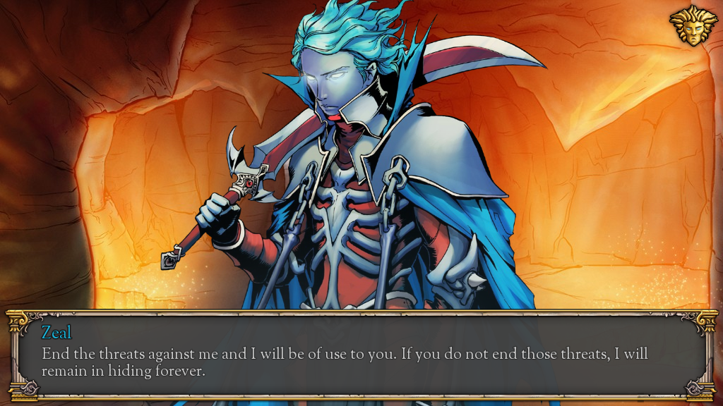 Chambara is a necromancer black witch and an optional character introduced by “The Castle of N’Mar”. She initially attacks the party as a boss enemy, but later you can make her join you. However, all necromancers are hunted by the Empire and her joining puts Apolimesho’s knickers in a twist as he is an imperial agent. Quite a few characters are convinced that she is evil, but Chambara just wants to be left alone and practice her art, which she claims is no more evil than any other form of magic. Hilariously her name means “sword fighting” in Japanese.